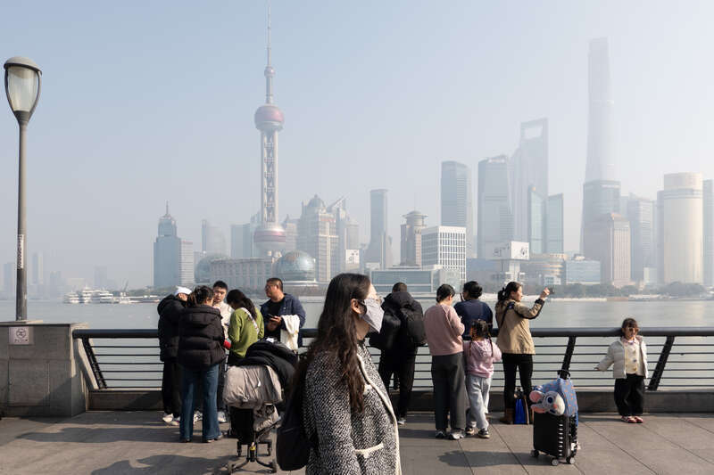 1月16日,上海,戴着口罩游外滩的人们。当日,上海空气质量状况不佳,一度达到重度污染。视觉中国供图