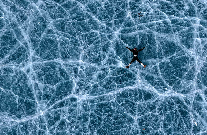 1月11日,宁夏银川市,市民游客在阅海国家湿地公园体验湖面冰浮项目。视觉中国供图