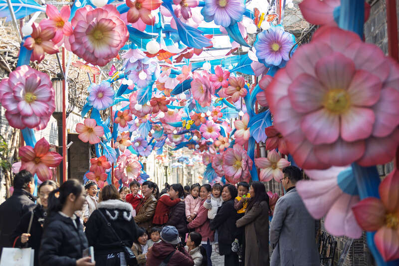 1月16日,江苏省南京市,市民游客在秦淮灯会会场游玩。据了解,第40届秦淮灯会将于2026年1月21日在白鹭洲公园举办亮灯仪式,灯会主题为“千年灯彩耀金陵·四秩华章启新程”。本届灯会以夫子庙核心景区、老门东街区、 白鹭洲公园为重点布展范围,同时在南部新城设立分会场。视觉中国供图