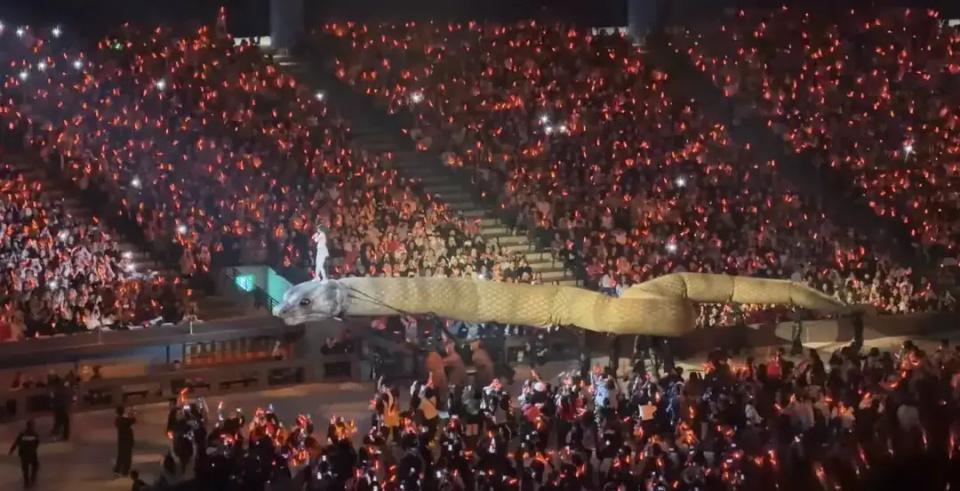 2025 年 12 月 30 日的蔡依林“ Pleasure 世界巡回演唱会”现场,蔡依林站在一条巨蛇的头部唱着歌曲《美杜莎》穿越舞台,那一刻,全场观众都惊呆了。