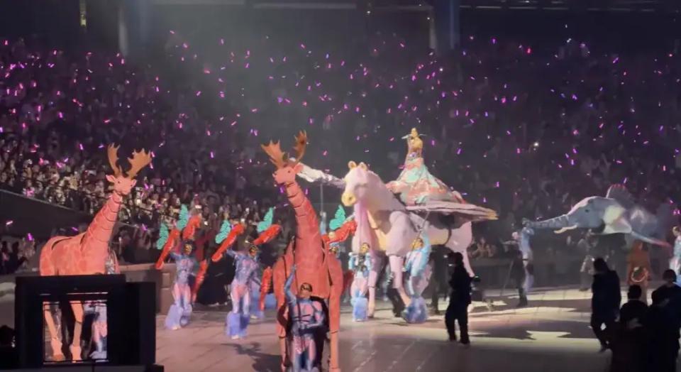 巨型装置也好,吊威亚也罢,都是演唱会现场体验升级的一部分。不仅如此,近年来演唱会愈发重视舞台叙事,通过对舞台奇观的系统化运用,巨星们正将演唱会塑造成一部拥有完整故事情节的“现场电影”,并由此推动巡演市场的整体体验升级至 Next Level。